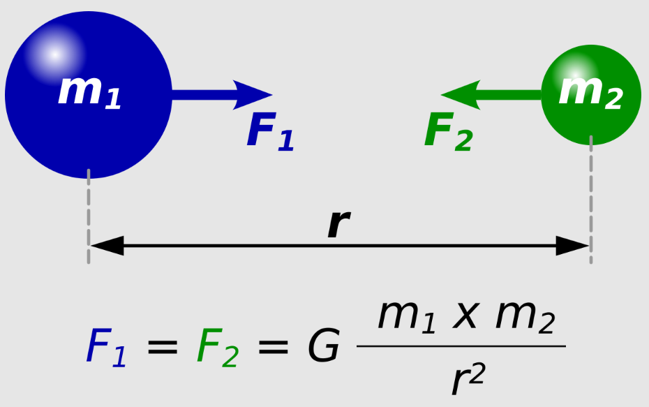 นี่คือสมการแรงดึงดูดระหว่างมวล ซึ่งเป็นแนวความคิดของฟิสิกส์ตั้งแต่ยุคของนิวตันครับ ก็คือเมื่อมวล 2 ก้อนมาอยู่ใกล้กันจะมีความโน้มถ่วงกระทำต่อกัน คำนวณได้ออกมาเป็นแรง (Force : Newton) รายละเอียดตามภาพ